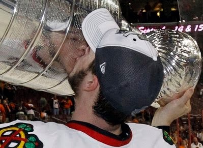 "HERE COME THE HAWKS THE MIGHTY BLACKHAWKS" and the STANLEY CUP.